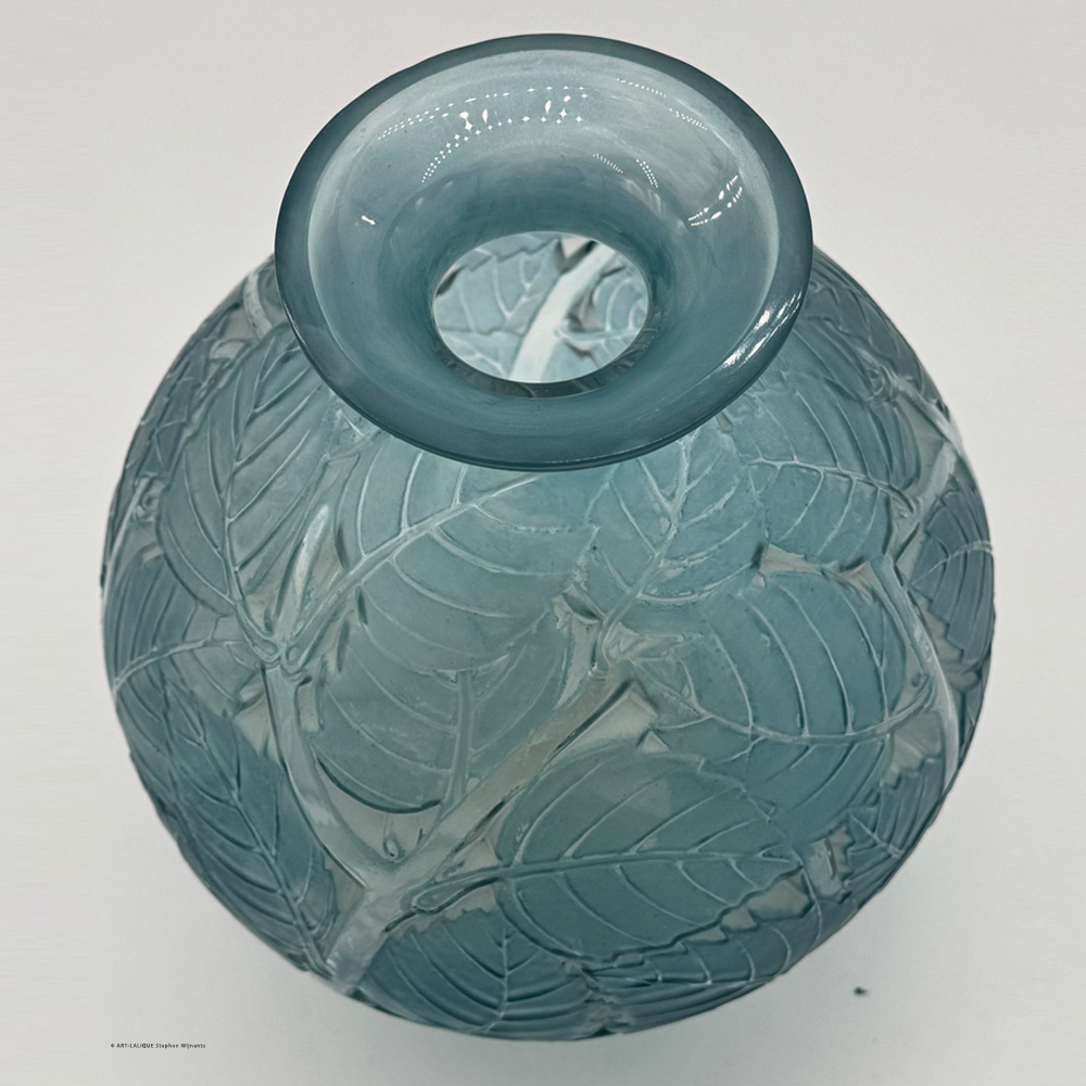 Verre blanc - Patine bleue. Référence : Félix Marcilhac, catalogue raisonné de l'oeuvre de verre de R.Lalique, éd. de l'Amateur Paris, 1994, p.444