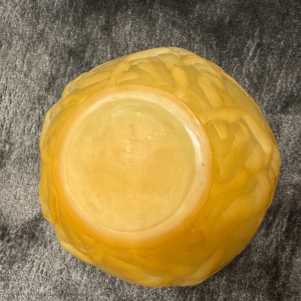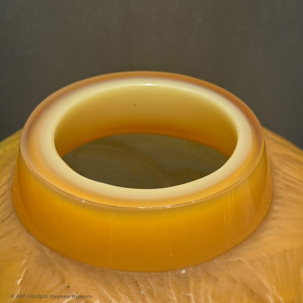 Opalescent glass on the inside and dark orange on the outside. Référence : Félix Marcilhac, catalogue raisonné de l'oeuvre de verre de R.Lalique, éd. de l'Amateur Paris, 1994, p.415
