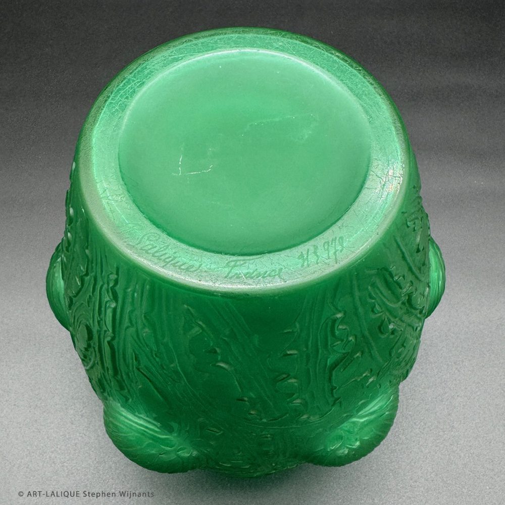 Green glass. Référence : Félix Marcilhac, catalogue raisonné de l'oeuvre de verre de R.Lalique, éd. de l'Amateur Paris, 1994, p.434